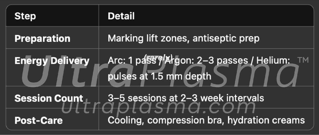 The helium mode plays a central role in support ligament contraction, while argon contributes to fibroblast-driven remodeling. Arc plasma ensures epidermal integrity and reduces pigmentation irregularities. When combined with gas-phase modulation, these effects yield natural, scar-free lifting and improved elasticity.