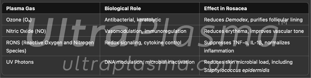 UltraPlasma™ represents a paradigm shift in rosacea therapy by addressing all pathological pillars: microbial overgrowth, vascular dilation, inflammation, and tissue remodeling. The multi-platform system allows personalized plasma dosing for superficial, mid-level, and deep tissue needs. The role of ozone and NO in this context deserves special attention, as they regulate vasculature and immunity without inducing cytotoxicity at therapeutic doses.